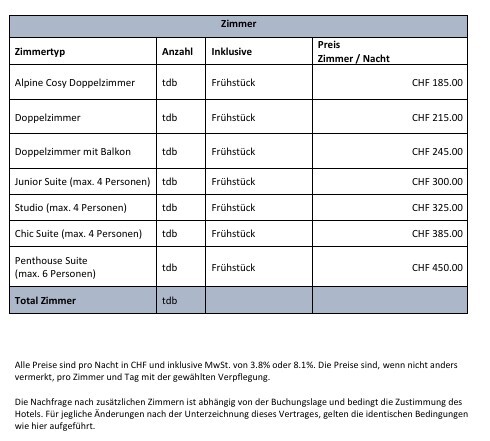 Zimmerpreise zur individueller Buchung/Bezahlung bei